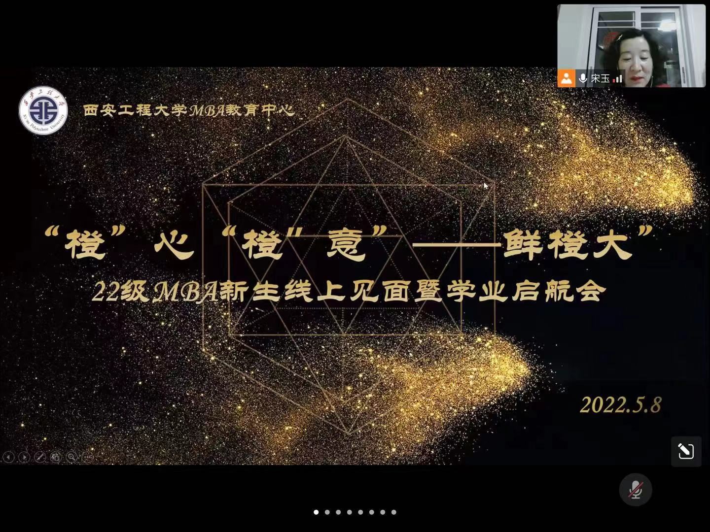 5月8日,正值鲜橙大MBA四届员工同校之际,MBA中心举办2022级新生线上见面暨学业启航会。此次会议由宋玉老师主持,管理公司党总支书记徐焕章教授、经理李艳教授、副经理王渊教授、党总支副书记于稀水老师,硕士生导师代表张克英教授、马贵梅副教授、研究生辅导员王志刚老师、吴昌敏老师莅临参会,部分高年级员工代表及全体MBA2022级新生共120余人受邀参加线上会议。