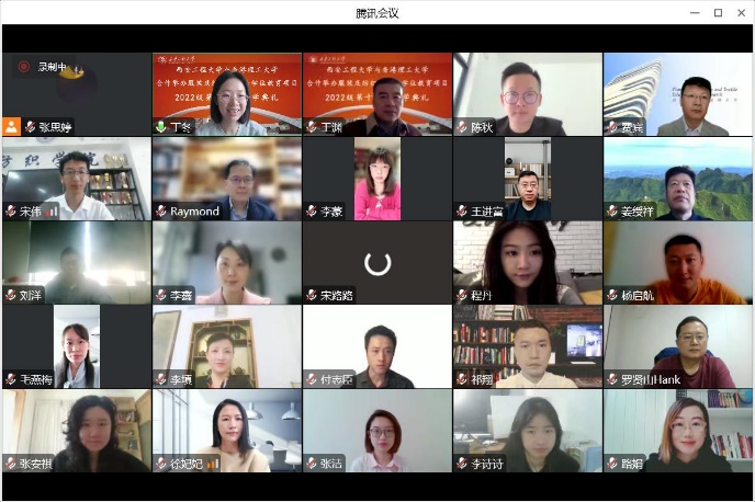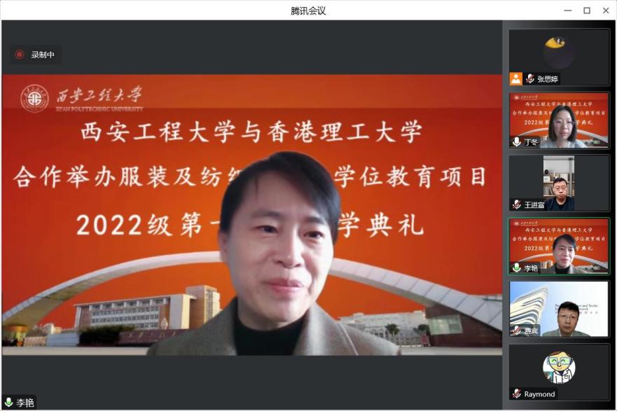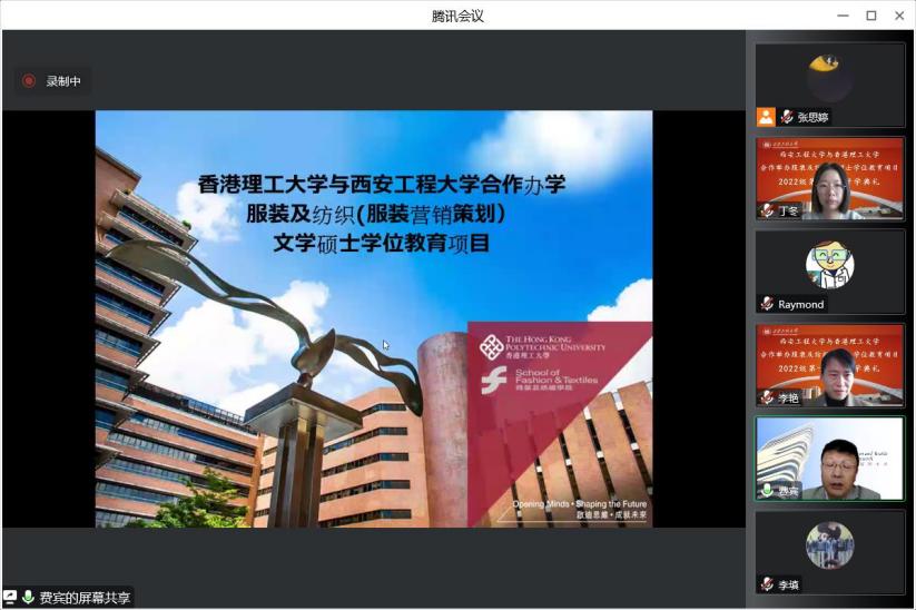 10月21日,公司与香港理工大学合作举办的服装及纺织品硕士学位教育项目(服装营销策划专业)第15期开学典礼在线上顺利举行,公司副董事长王进富教授、香港理工大学时装及纺织公司暂任经理黄维扬教授、合作办学项目港方负责人费宾博士、项目资深理事会成员姜绶祥教授、威廉体育williamhill经理李艳教授、威廉体育williamhill副经理王渊教授、国际处领导、项目中方主管丁冬副教授、合作办学项目工作人员及第15期全体员工参加了开学典礼。