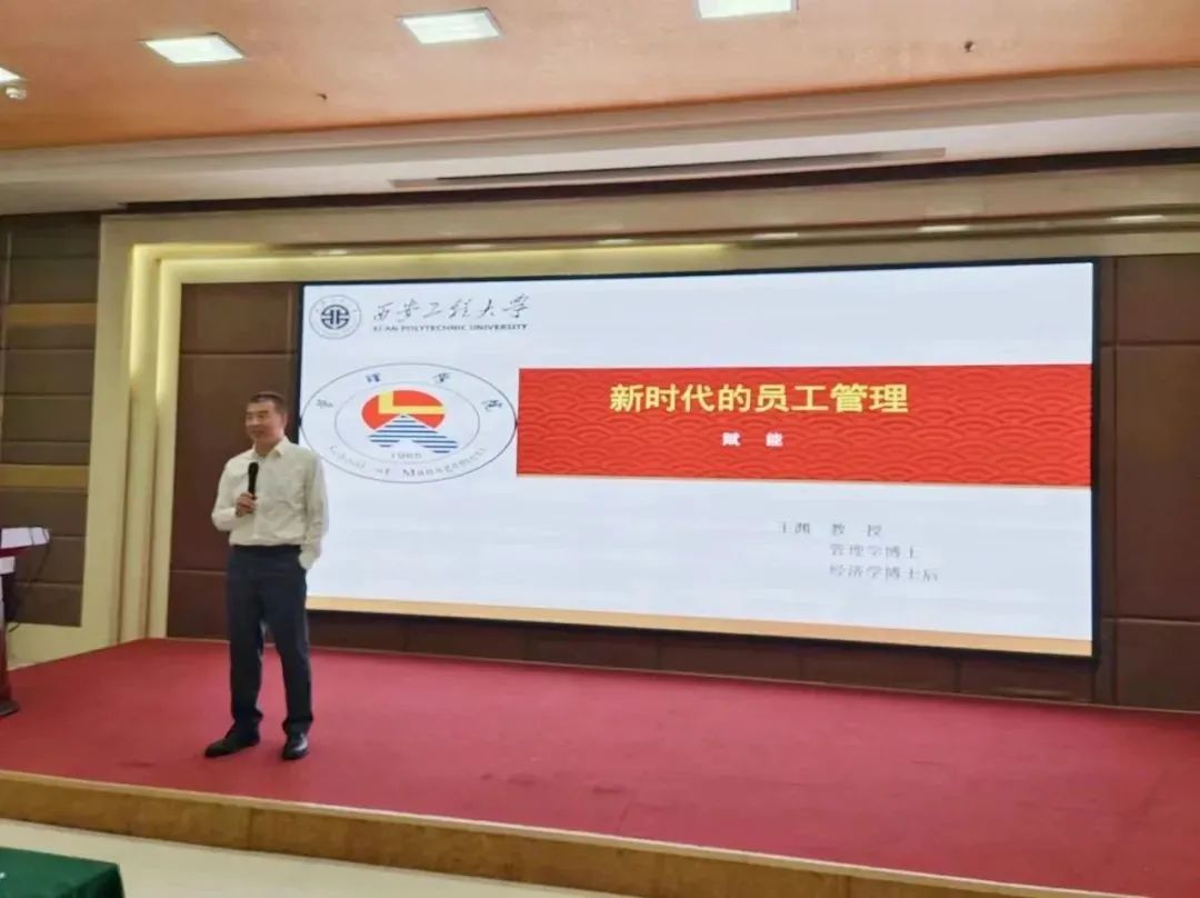 典礼之后,王渊教授为广大师生做了一场精彩的学术报告—《新时代的员工管理》。围绕“赋能”两个字阐述如何进行新时代的员工管理,并围绕“00”后的特点和相关案例进行分析,启发同学们应该做一个什么样的领导以及如何给员工“赋能”。