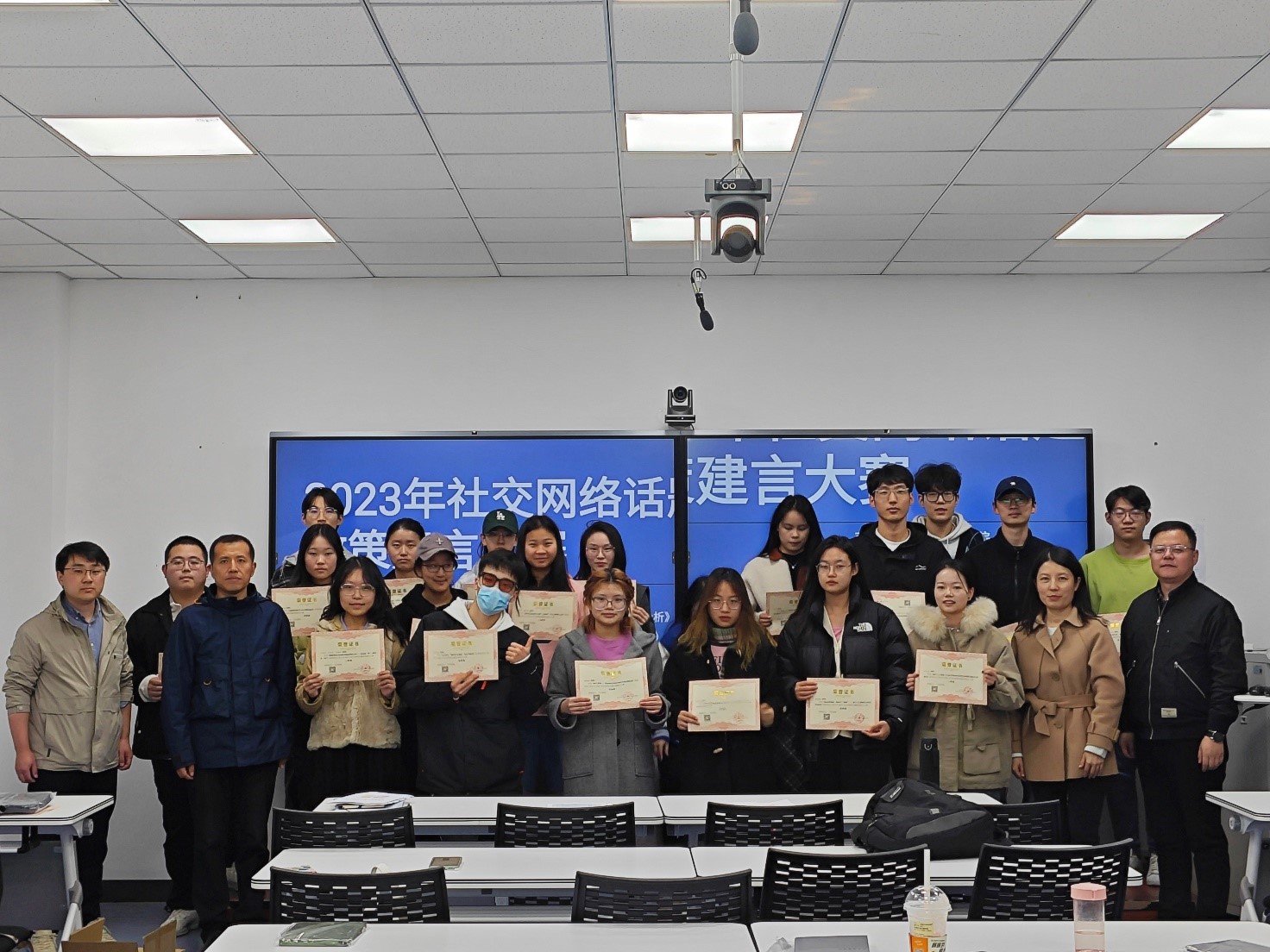 2023年11月21日,“2023年社交网络话题政策建言大赛”员工作品分享暨颁奖仪式在临潼校区人文楼举行。管理公司党委副书记代锴、经理助理陈恒、实验室主任郭晶、经济贸易系系主任邵鹏参加分享会并向获奖员工颁奖,会议由邵鹏主持。获奖员工代表郑小颖、武悦、邱小洁分别向与会师生分享了自己的参赛作品,陈恒老师对大赛进行点评。