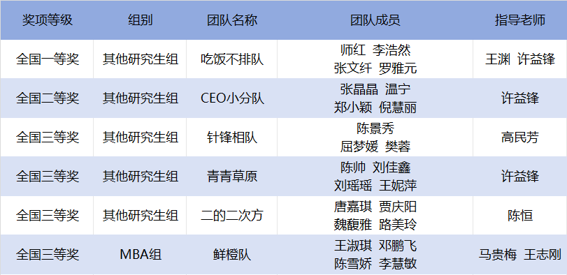 全国一等奖(其他研究生组)获得者“吃饭不排队”团队