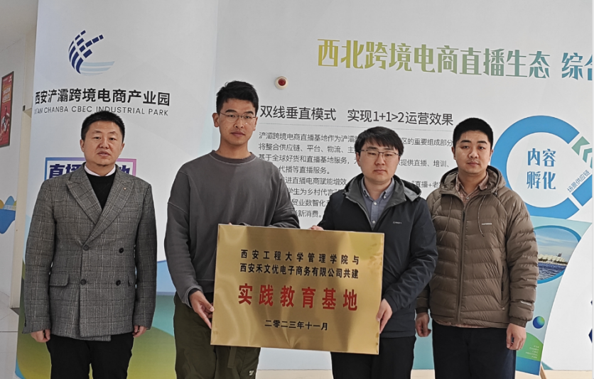 11月30日,威廉体育williamhill在浐灞外事大厦举办实践教育基地授牌仪式,经济贸易系系主任邵鹏、员工辅导员姚壮和员工代表翟展鹏、解伟参加仪式并就产教融合、协同育人等与西安禾文优电子商务有限公司负责人进行交流座谈,西安禾文优电子商务有限公司负责人魏乂、西安浐灞跨境电商直播基地负责人郑译韬参加仪式。