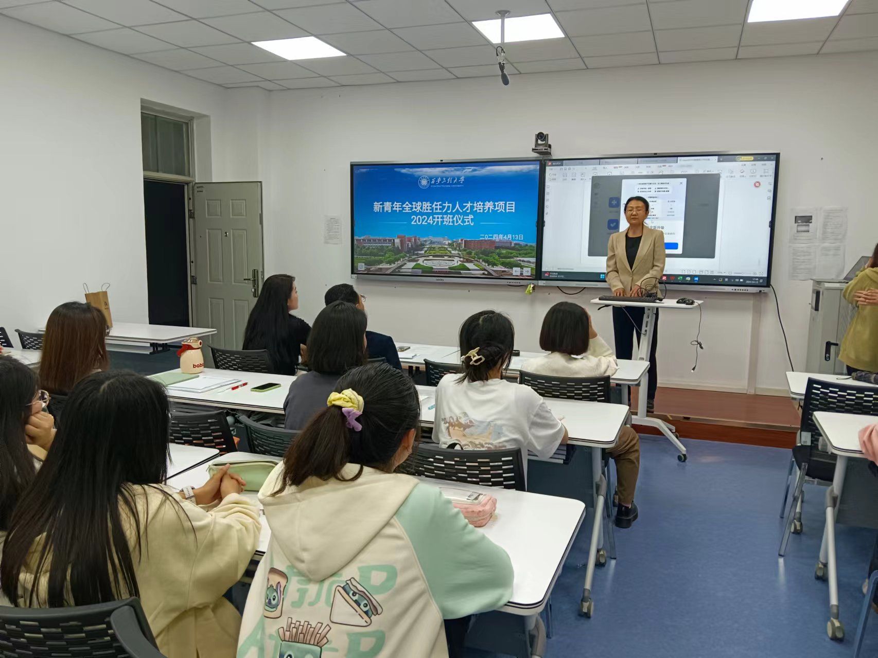 王雨波介绍了项目的人才培养目标,她鼓励新时代新青年要抓住机遇,展示个人才华,珍惜青春岁月,积极进取,努力成为具备全球竞争力、参与全球治理、为国家发展贡献智慧和力量的人才和中流砥柱。