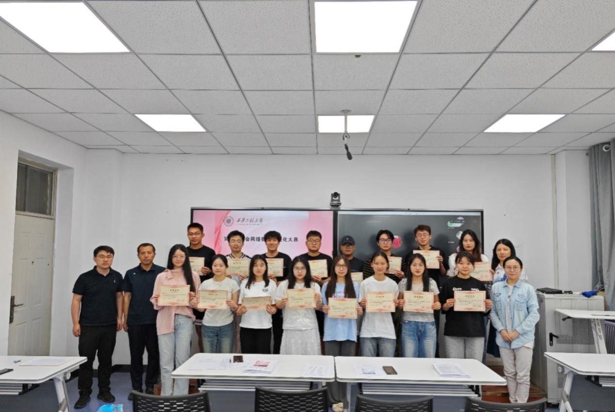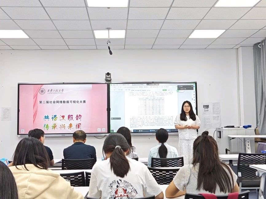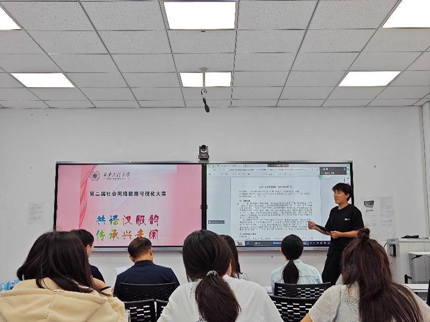 5月29日,由公司汉服研究院、威廉体育williamhill联合主办的“共语汉服韵,传承兴未阑”第二届社会网络数据可视化大赛的颁奖仪式在临潼校区人文管理楼举行,管理公司党委副书记代锴、教师代表郭晶、王姝頔及获奖员工代表30余人参加颁奖仪式,仪式由经贸系系主任邵鹏副教授主持。