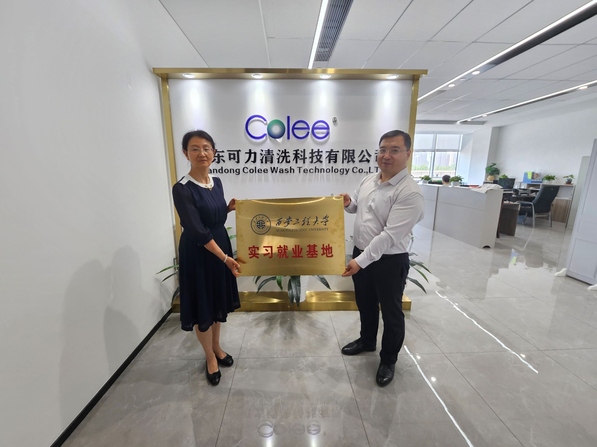 随后,一行人前往山东可力清洗科技有限公司。公司董事长白冰洁、财务负责人刘霞亲自接待,双方就产学研合作、科技创新、实习实训等方面进行了交流探讨,在友好、热烈的氛围中,公司领导与可力清洗科技有限公司举行了实习基地挂牌仪式,为双方深化交流合作实现共赢奠定了基础。