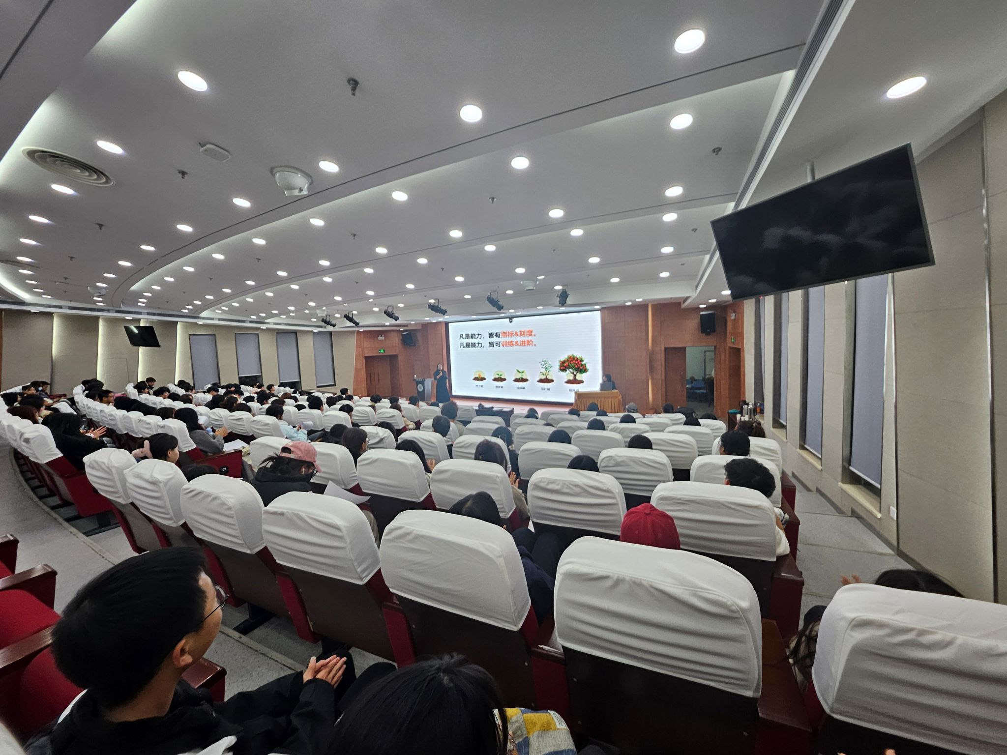 聘任仪式后,曹田嘉子作了两场职业发展专题讲座。首场“面试官底层逻辑心法解读”主题讲座,聚焦大四员工与研究生,深度剖析百强企业人才需求,揭秘面试官视角,传授面试技巧与策略,助力员工精准对接职场。第二场“我与就业‘手牵手’”主题讲座,面向全体本科生及研究生,以实战为导向,引导员工自我评估,明确职业规划,构建框架思维,制定实施路径,并结合案例分析,为员工们提供实用自评工具,助力员工职业生涯,现场反响热烈。