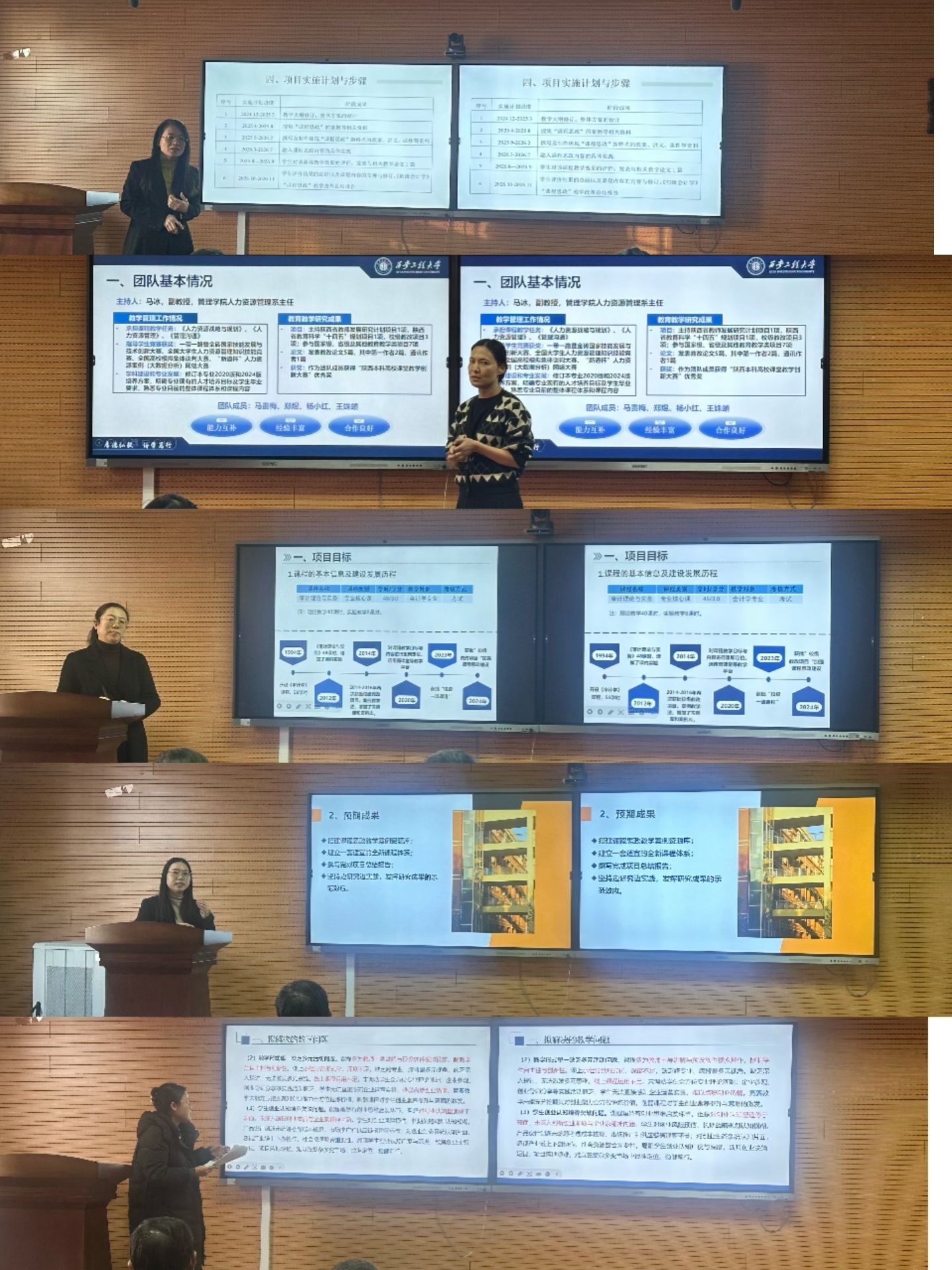 公司12位教师分为两组参与了项目汇报。教师们围绕教学改革主题进行了PPT汇报,内容涵盖了方法创新、课程体系优化、实践教学改革、人才培养等多个方面,充分展示了各自的教学改革思路和成果。