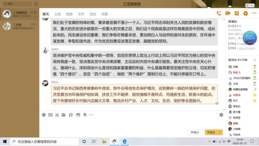 首先,刘蓉带领全体参会人员认真学习了《关于深入学习习近平总书记来陕考察重要讲话精神重要指示精神的通知》【西工程大工字(2020)2号】文件的两个附件——《习近平在陕西考察时强调 扎实做好“六稳”工作落实“六保”任务 奋力谱写陕西新时代追赶超越新篇章》和《认真学习宣传贯彻落实习近平总书记重要讲话重要指示 只争朝夕真抓实干奋力谱写陕西新时代追赶超越新篇章——陕西省委常委会(扩大)会议传达学习习近平总书记来陕考察重要讲话 重要指示精神》。随后,党员们展开了热烈讨论。