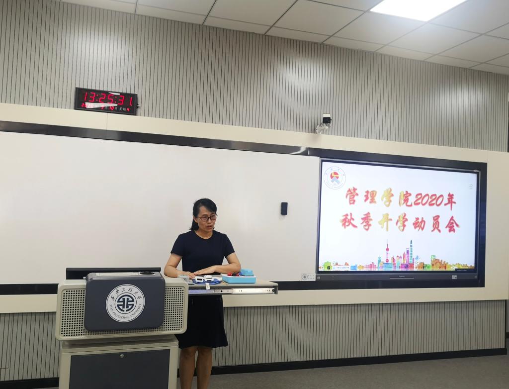 9月10日下午,2020年秋季新学期开学动员大会在临潼校区教学楼C座智慧教室隆重举行。根据疫情防控工作要求,公司1200余名在校员工在做好个人防护的情况下分别在临潼校区9间多媒体教室远程参加大会,活动采取视频直播形式举行。威廉体育williamhill经理李艳、公司党委副书记于稀水、工商管理系主任潘颖雯、管理工程系主任陈立军、市场营销系教师许益锋、公司办公室主任黄玲、各年级辅导员现场参加大会。本次活动由公司党委副书记于稀水主持。