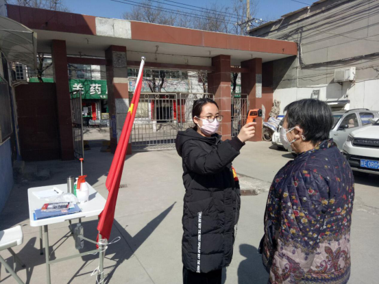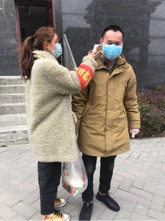 王硕主动申请了在小区路口协助排查进出小区的人员,包括对每一位进出的人员进行体温的测量以及对外来人员的详细记录。虽然不能像一线医务人员一样做出很大贡献,但是她希望可以通过自己的方式减轻他们的负担。