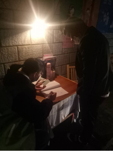 一个空荡荡的棚子,一个四方小桌和一块宣传牌。易芳婷和其他三名志愿者一起,用彩布将棚子周边围起来,夜里也能够遮挡不少风雨。社区给她们送来了木炭、口罩、酒精和许多常用品,让这个原本简陋的防疫点成为了他们温暖的小“家”。志愿者每日为进出的居民进行各类服务,抗击疫情,共筑防线,一起打赢这场疫情防控攻坚战!