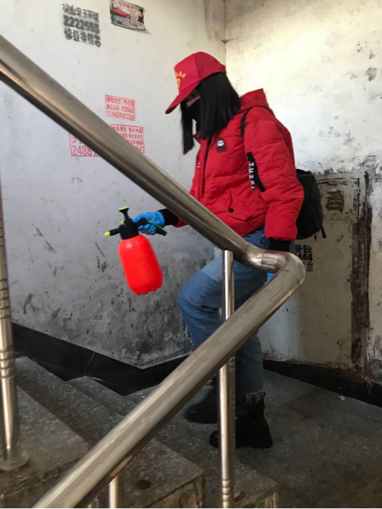 为响应黑龙江省伊春市铁力市团委的号召,在保护好自己的前提下,2017级会计学1班的姜琦同学,以志愿者的身份加入了社区一线的工作中。为切实保障群众生命健康安全,减少居民外出流动,姜琦同学坚持在四个小区十几栋家属楼的楼道内进行消毒,因为长时间进行消毒导致头晕恶心甚至在短时间内嗅觉失灵。每天爬楼膝盖的旧伤复发,“我不累,年纪小缓一下就好了”“没事,我没事”这两句话姜琦总是挂在嘴边。在繁忙的消毒工作之余,姜琦还帮助社区建立走访排查档案,以及复工人员的登记工作。