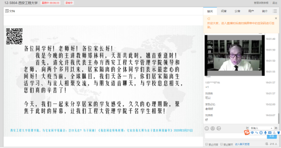 讲座中,郑林科教授围绕“八个自我观照”、“父母的角色转换”,以“员工自我关照”为主题的在线问卷调查结果为基础,结合疫情期间员工的日常学习生活实际案例,为同学们普及心理健康知识,传授心理调适技能,引导员工家长更新教育方法、转变教育观念。他指出,罕见疫情给人们的生活带来了前所未有的变化,父母和子女长时间保持着“抬头不见低头见”的相处模式。长期“宅”在家里的人也容易出现焦虑情绪,进而出现家庭关系紧张等问题。疫情期间,同学们要学会在困境中调整心态,要做到保持规律的作息时间、营养均衡的饮食,制定学习计划和锻炼计划,保证良好的身体和学习状态。当感觉到自己有负面情绪后,要注意避免消极应对,不要过度娱乐和过多睡眠。与此同时,员工家长也要改变心态,转变角色,把自身从抚养者转变为孩子的教育者、倾听者。不能沿用过去的“父母权威”,而要做到理解和尊重孩子,与孩子多多沟通,和谐相处,这才是亲子关系应有的样子。
