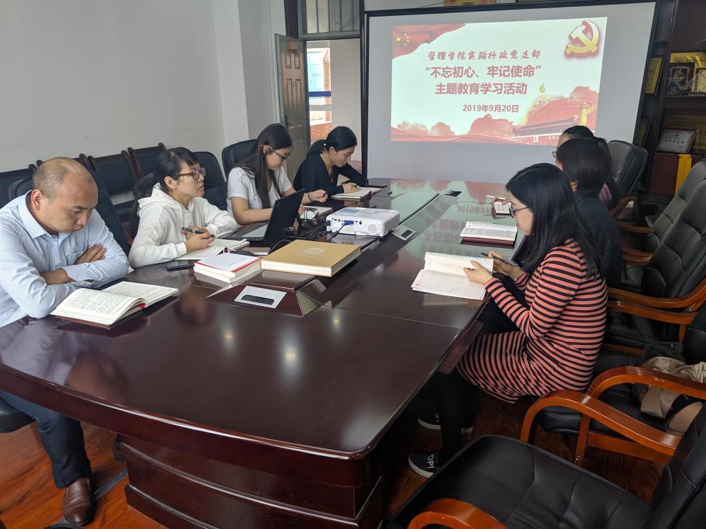 9月20日上午9点,威廉体育williamhill实验行政党支部在临潼校区人文楼311会议室开展“不忘初心、牢记使命”主题学习教育学习活动。会议由支部书记黄玲主持,支部全体党员参与了此次学习。