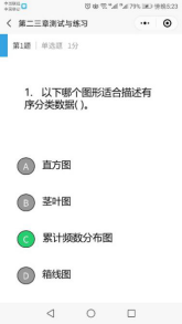 网络上课不同于在公司教室上课,对同学们的自觉性和专注性要求更好。但想到学习的最终目的是学到知识,我一定要采取一定的措施来把握同学们学习的情况。同时,结合我个人在网上学习的心得,能够边学边练习是一个不错的方式。正好“雨课堂”提供了很好的平台,即使它在线直播存在网络拥堵的风险,但是推送课前预习与课后作业还是可以利用起来的。“雨课堂”中的“批量导入”可以将word中已经编辑好的试题导把入成PPT形式。如果把已经编辑好的课件或试卷发布给同学们,同学们能在自己的手机端接收到消息提示,点开即可以做题。对于选择题,同学们打开手机或电脑就可以看到题目(如图1),直接选择答案就可以了。而对于主观题,我让同学们在作业本上写,写完了把过程和结果拍下来,以图片的形式发给我。这样,既方便了没有电脑的同学,也不会出现因为电脑上打出来耽搁时间的问题。而我也能很快掌握同学们的学习情况。
