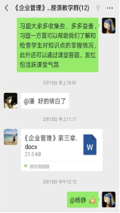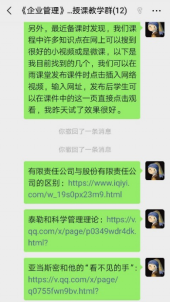 《企业管理》作为全校通识选修课,课程的最大特点就是人数较多,往往一个课头包含100名员工左右,因此,在线授课面临的最大难题就是如何带领好这百名员工跟上教学的进度,在直播中可以与他们形成良好的互动并得到及时的反馈。对此,老师们想出了各种办法,以下是课程组中各位教师教学经验的分享: