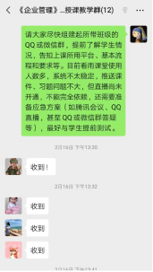 做法3:关注和把握时间节点,督促和引导他们进入到学习状态。提前2-3天发预习课件并通过QQ群提醒员工在截止日期前完成。上课当天提前半小时左右进入课堂,并通过QQ群通知员工早些进入课堂,防止临近上下课时网络拥堵。课后及时发布作业并通知员工按时完成,在作业截止时间前一天再次督促尚未完成作业的员工尽快完成。相对于传统课堂,网络环境下员工的学习状态更为分散,学习氛围不强,这就需要教师更多地在不同的时间节点,不厌其烦地进行监督和督促,引导全体同学进入到学习状态,共同进步。