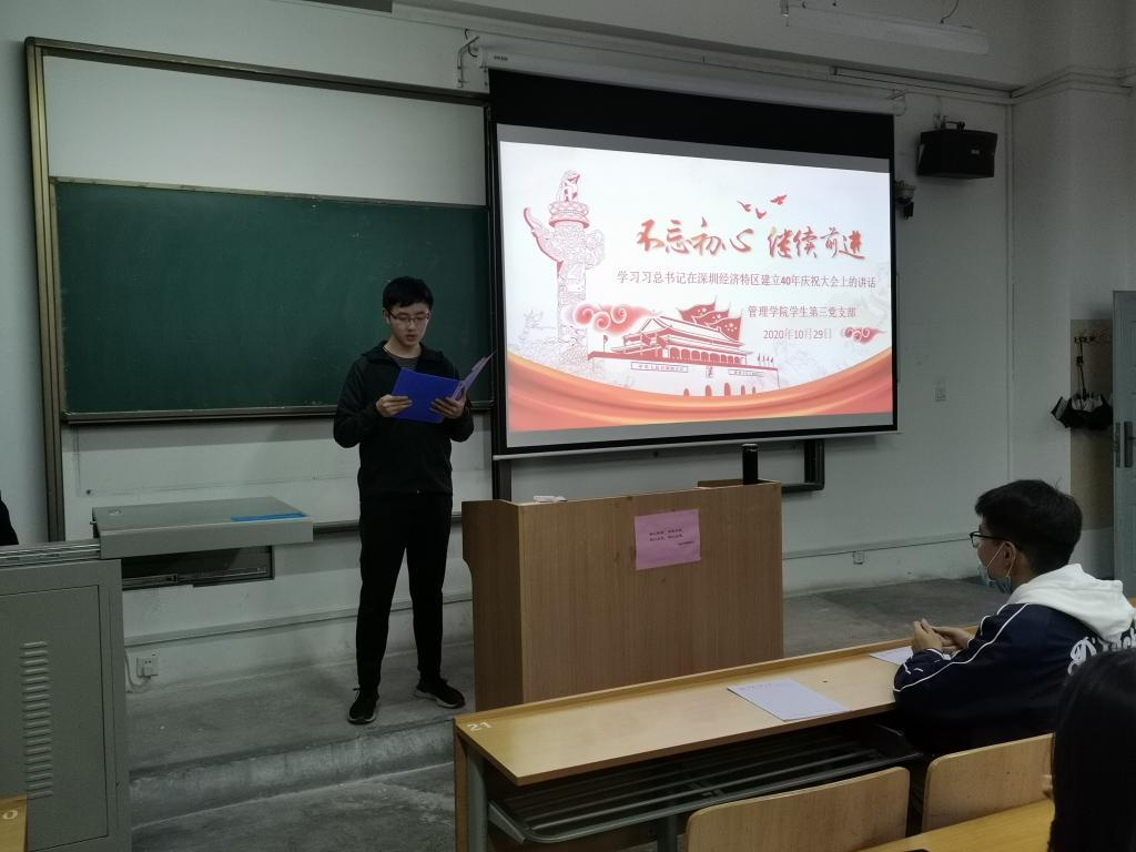 11月7日晚,威廉体育williamhill员工第三党支部在临潼校区A-112教室召开了党员学习大会,就“习近平总书记在深圳经济特区建立40周年庆祝大会上的讲话”进行学习。支部全体党员、预备党员及积极分子参与本次学习。