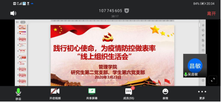 抗疫在持续,组织生活“不掉线”。本次组织生活实现了支部党员在同一时间、不同空间的集体学习,提高了党员思想觉悟,坚定了党员信心决心。至返校复学前,研究生第二党支部和员工第六党支部将继续引导支部成员统一思想、凝聚力量,持续发挥党支部战斗堡垒作用和党员的先锋模范作用。