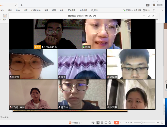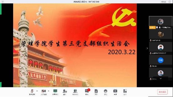 最后,支部书记刘蓉强调,在马上看到疫情散去的曙光时,各位同学更要自律,不给国家添乱。在家积极调整状态,为开学做准备。大四的同学要调整状态,在做好毕业准备的同时,不能等、靠、要,积极参加线上招聘会;大三的同学要根据公司“停课不停学”的安排,保质保量地完成线上学习。通过这次疫情,让我们更加体会到了祖国的强大,青年员工要把自己的命运和祖国的命运联系起来,努力学习建设祖国的本领,将来成为国家的栋梁之才。