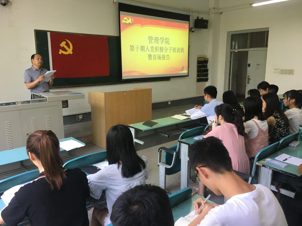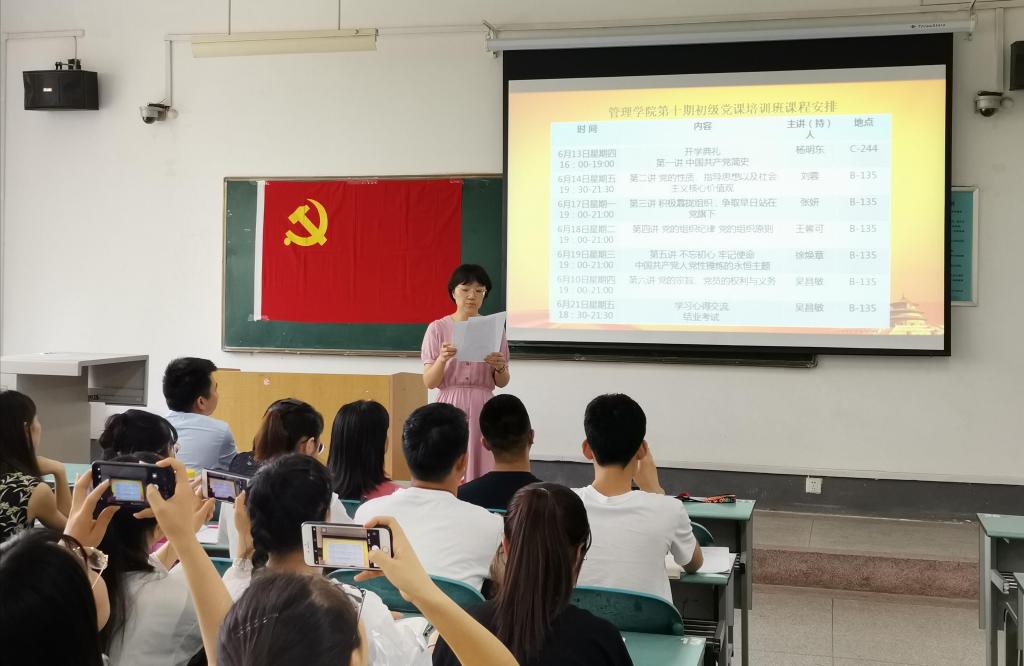 2019年6月17日下午,管理公司党委于临潼校区C244教室举行了第十期初级党课培训班开班典礼暨首场报告会。管理公司党委书记徐焕章,各员工党支部书记和78名入党积极分子参加了此次开班典礼,开班典礼由员工第六党支部书记吴昌敏主持。