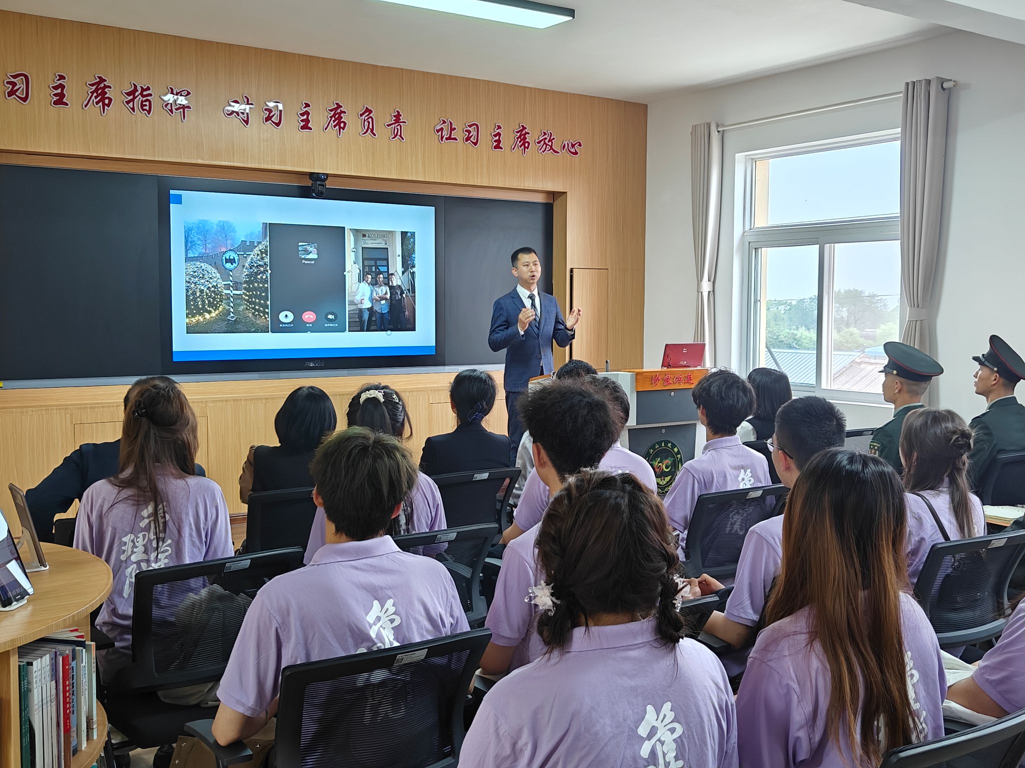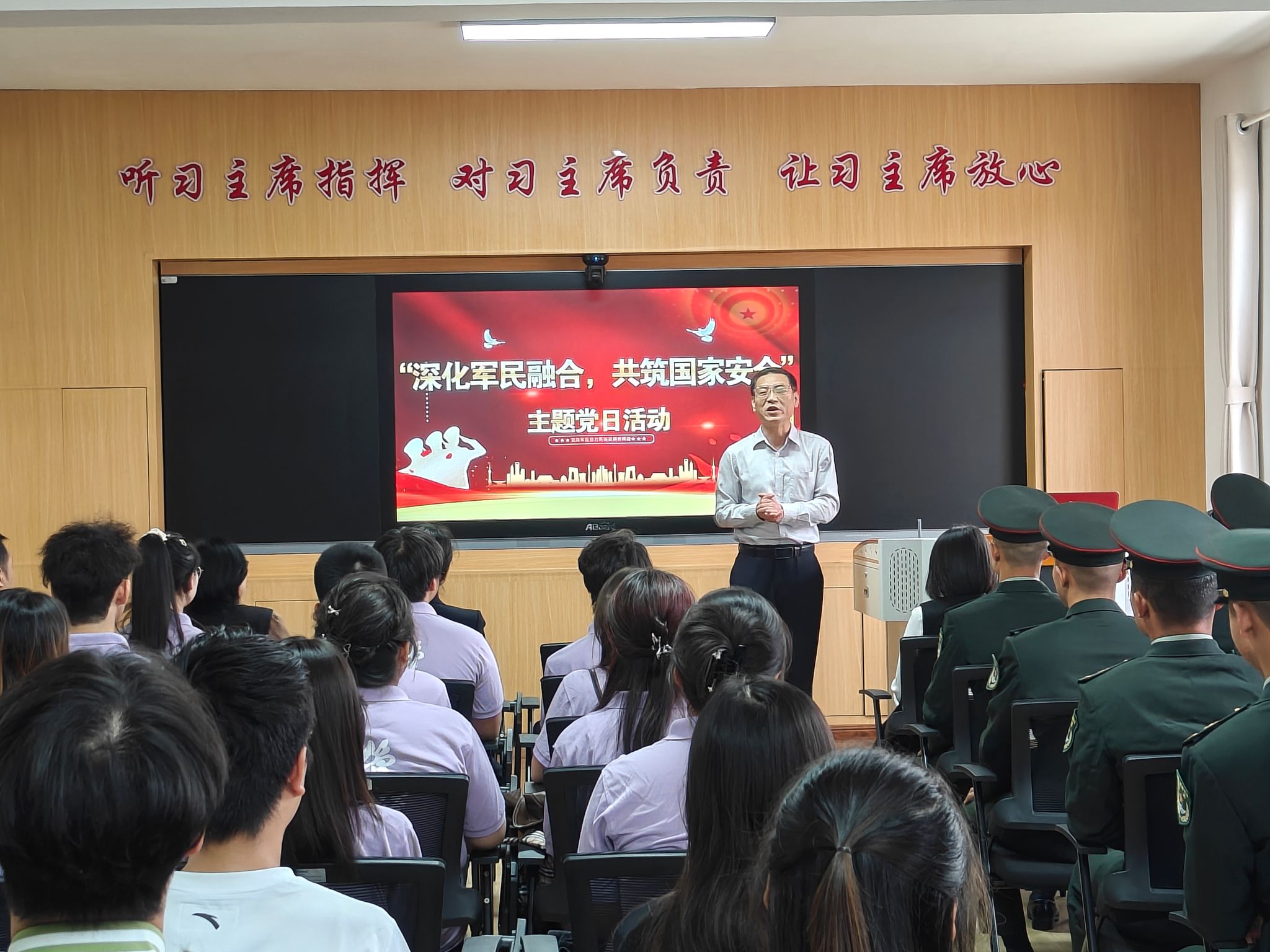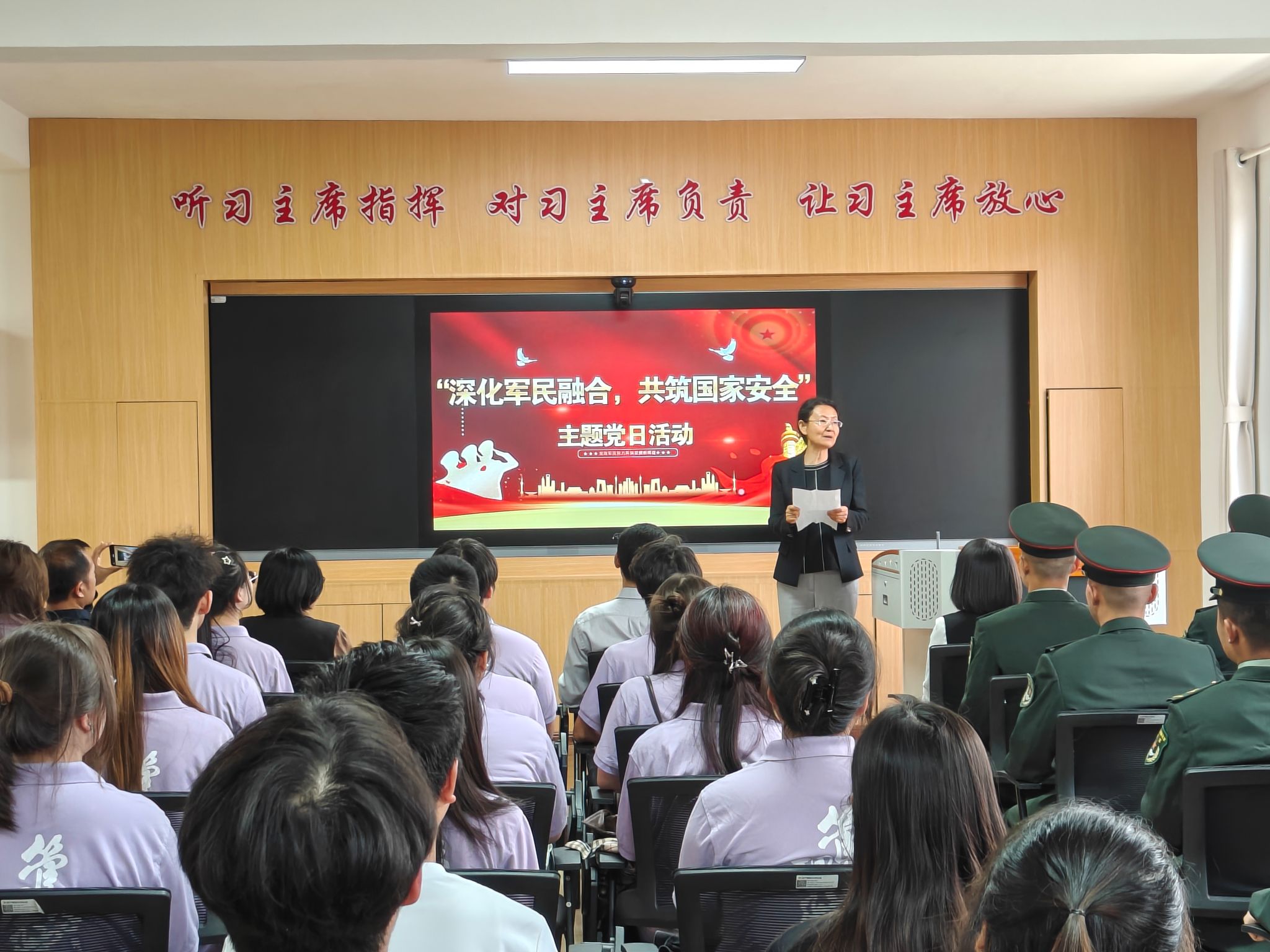 为深化军民鱼水情谊,加强师生国家安全意识,5月1日,委、国际处高教中心党支部共赴临潼区71897部队沙家浜营开展“深化军民融合,共筑国家安全”主题党日活动。管理公司党委书记王爱华、国际处高教中心党支部书记秦伟等一行、公司辅导员及30余名员工参加活动。