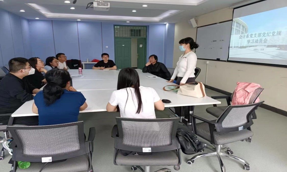 2024年5月7日,会计系党支部在7-610开展了党纪学习教育动员会,会计系全体老师参加。王译根据《中共威廉体育williamhill委员会关于在全校开展党纪学习教育的实施方案》相关要求,向全体会计系老师传达公司党委关于党纪学习教育的安排,并集体学习了习近平总书记关于开展党纪学习教育的重要讲话和重要指示精神。