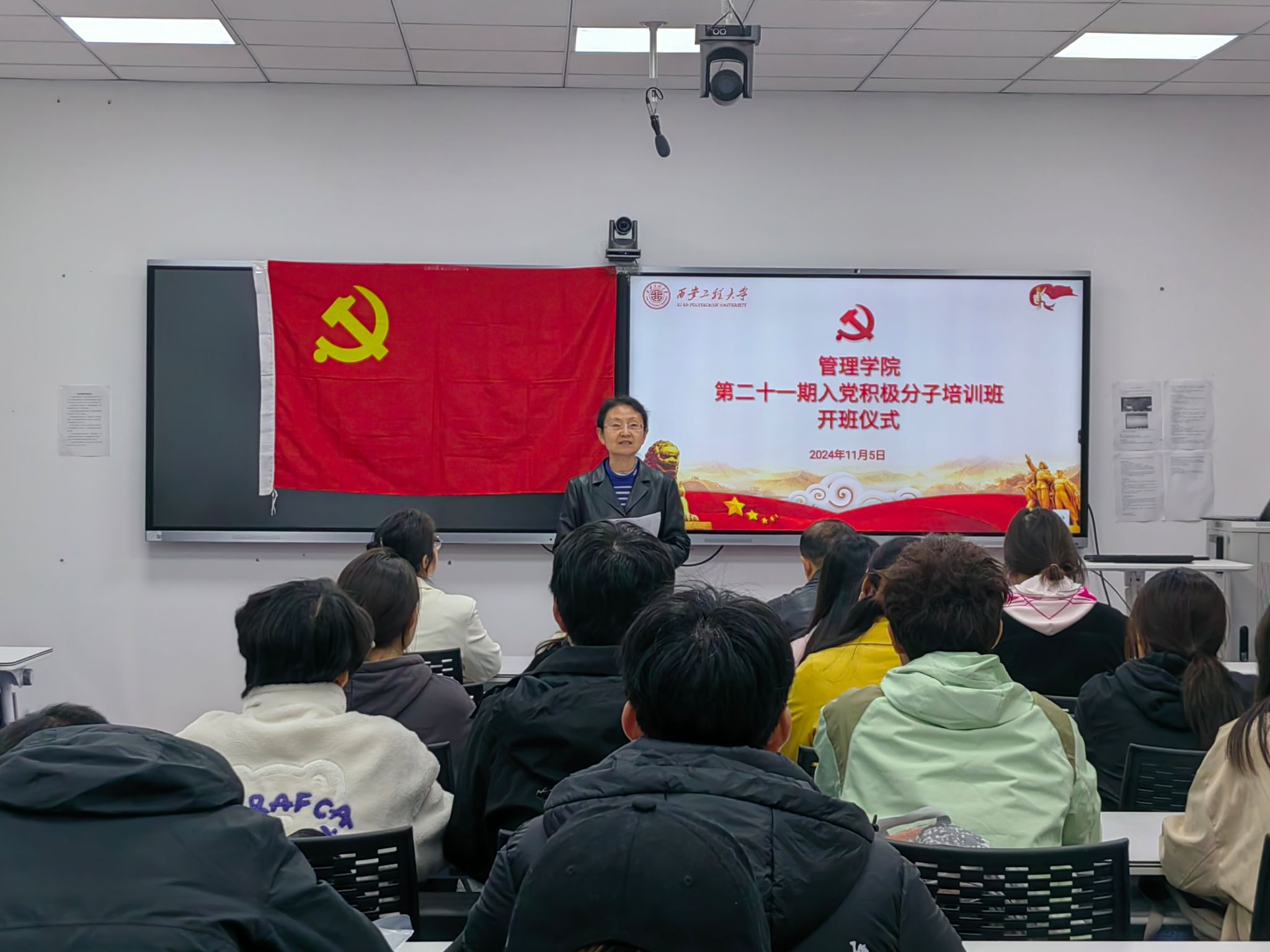 开班仪式在庄严的国歌声中开幕。王爱华在开班动员讲话中指出,入党积极分子参加集中学习培训,是每一位要求进步同学的必修课程,是接受党的教育的一次难得的学习机会,并鼓励大家珍惜这次机会,学有所思,学有所得,学有所成。同时,她对参加培训的同学们提出三点希望和要求:一是要坚定信仰,明确入党初心。她提到,新中国成立75周年来取得的辉煌成就,离不开一代又一代中国共产党人的不懈努力和接续奋斗,大家应铭记历史,在培训过程中全身心投入,深入学习党的理论知识,不断加深对党的认识和理解,确保自己的入党初心历久弥坚。二是要勤学不辍,保证培训效果。要珍惜学习机会,保持静心、耐心和恒心,坚持全程参与、全程投入,做到勤学不辍、笃学不怠,把全部学习任务高质量地完成好,确保培训取得事半功倍的效果。三是要锤炼自身,争当先锋模范。要始终保持清醒头脑,坚定理想信念,用习近平新时代中国特色社会主义思想武装头脑、指导实践,积极参与公司、公司的各项工作和活动,发挥先锋模范作用,带动身边的同学共同进步,以实际行动践行党的宗旨和使命。