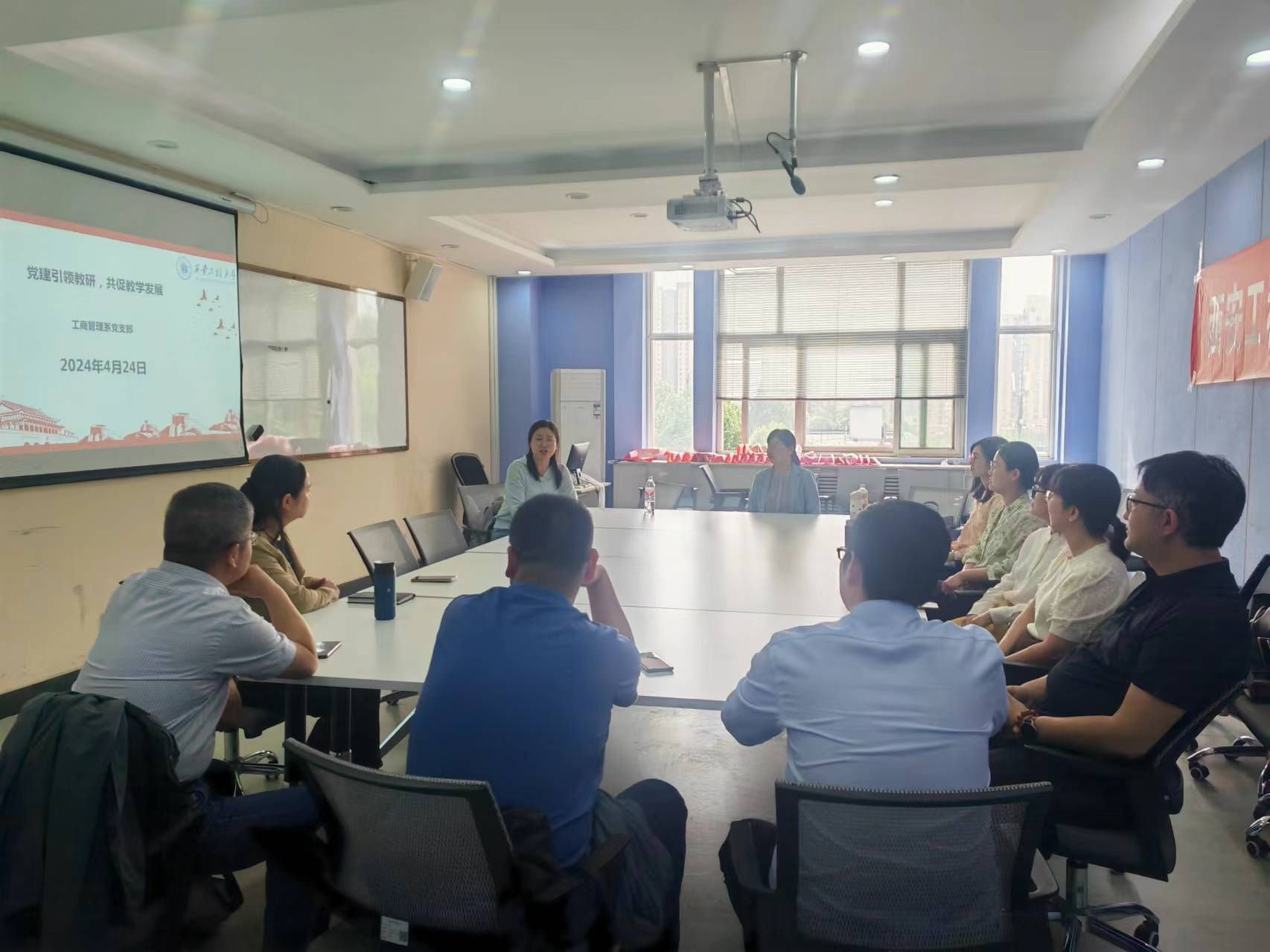4月24 日下午15:30,工商管理系党支部在金花校区7-607会议室围绕一流专业建设工作召开专题会议。会议由支部书记杨静及主持,党支部全体党员参加了本次会议。